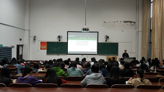 2018年4月25日下午六点半,我院在外语楼北101室召开寝室长会议。全院寝室长参,学院党总支副书记罗耒英、学生辅导员王有斌出席会议。