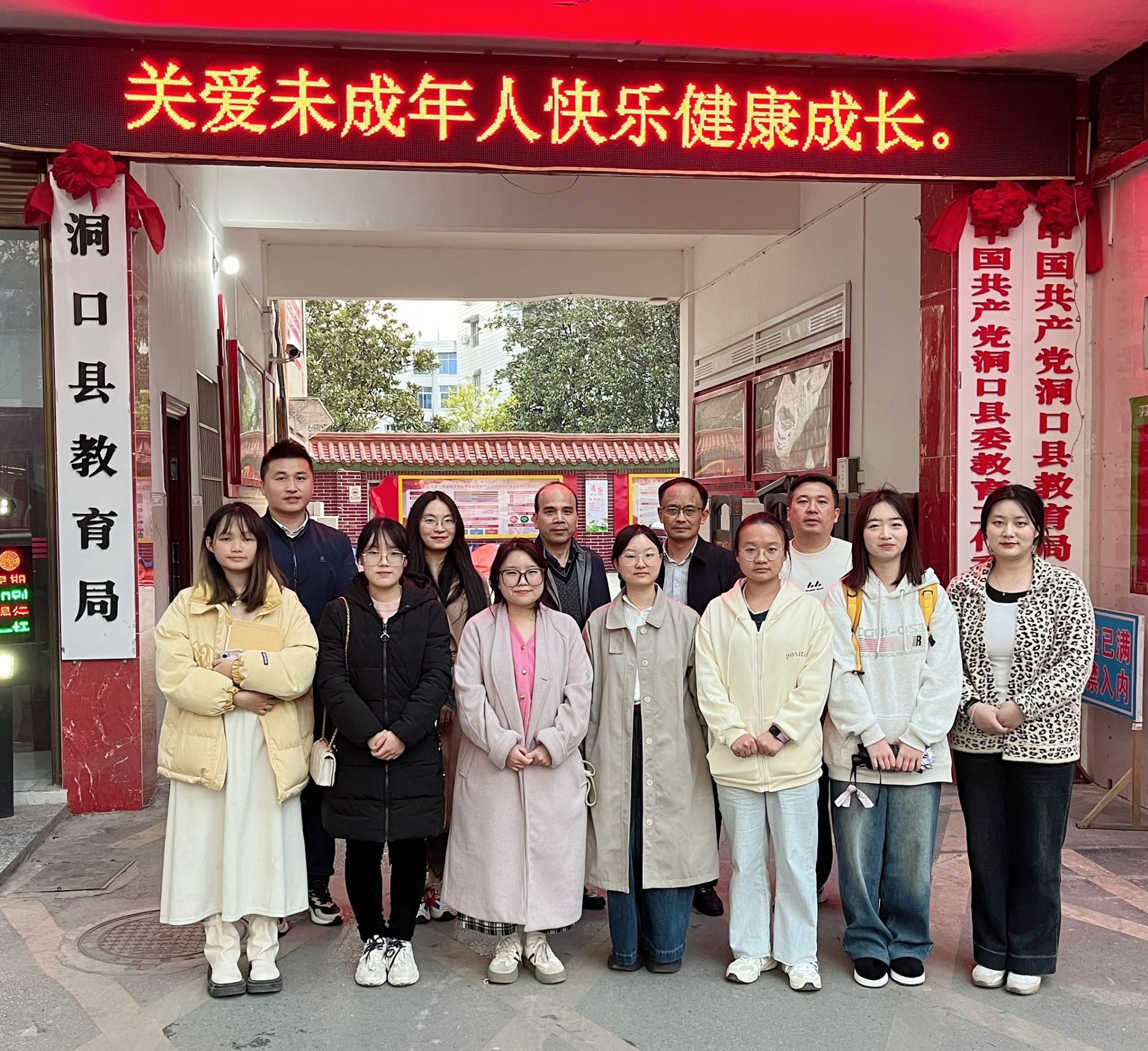 图1 工作组与洞口县教育局领导以及公费定向师范生在座谈会后合影留念
