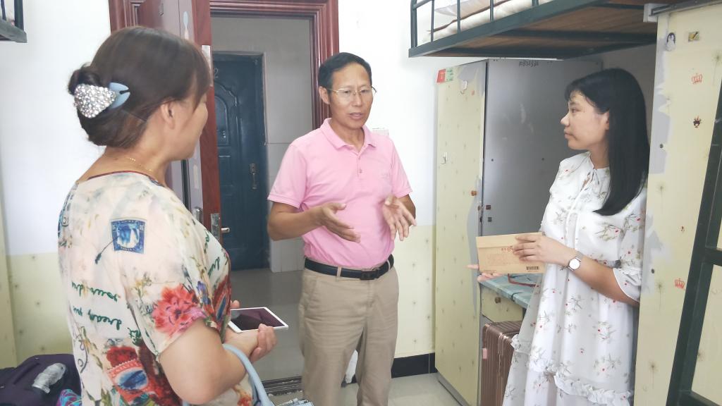 了解该生情况后,学院领导高度重视,及时向学生工作处和陈敏副校长作了报告,陈校长特别关心阳竹丹同学的困难情况,指示学院要特别关心,解决她的入学困难。9月20日阳竹丹同学到校当天下午,我院党总支书记陈君生、副书记罗耒英到学生宿舍看望了阳竹丹同学。陈书记详细了解了她的家庭情况、生活状况和学费筹措情况。陈书记说,“在学校里老师就是父母,有任何需要帮助的地方可以跟老师反映”,并鼓励她继续保持阳光开朗、自立自强的心态,放下负担、努力学习。罗副书记告诉阳竹丹,学校和学院在一些政策上会给予家境困难的同学关爱并提供帮助,希望她能安心学习生活。