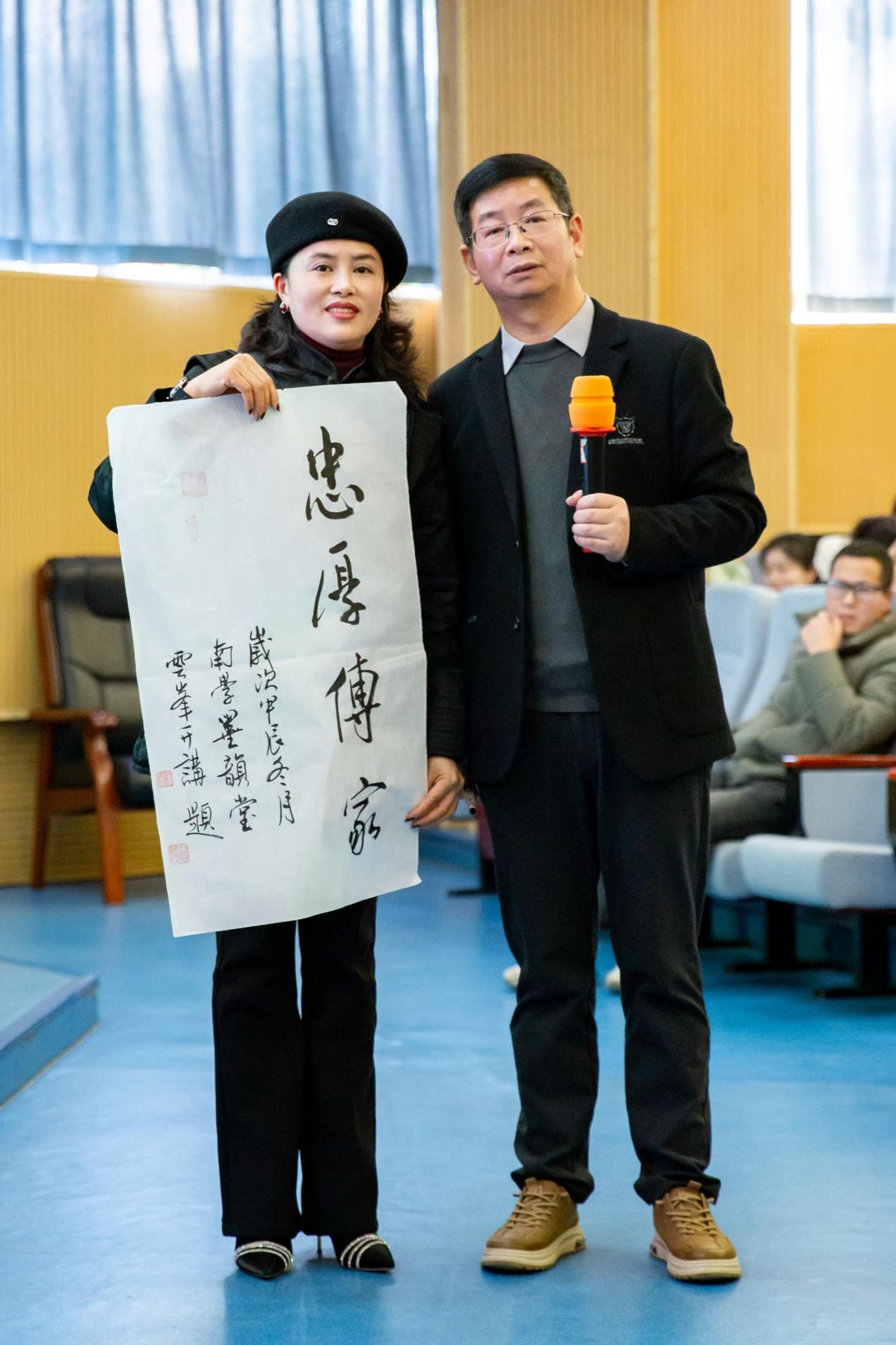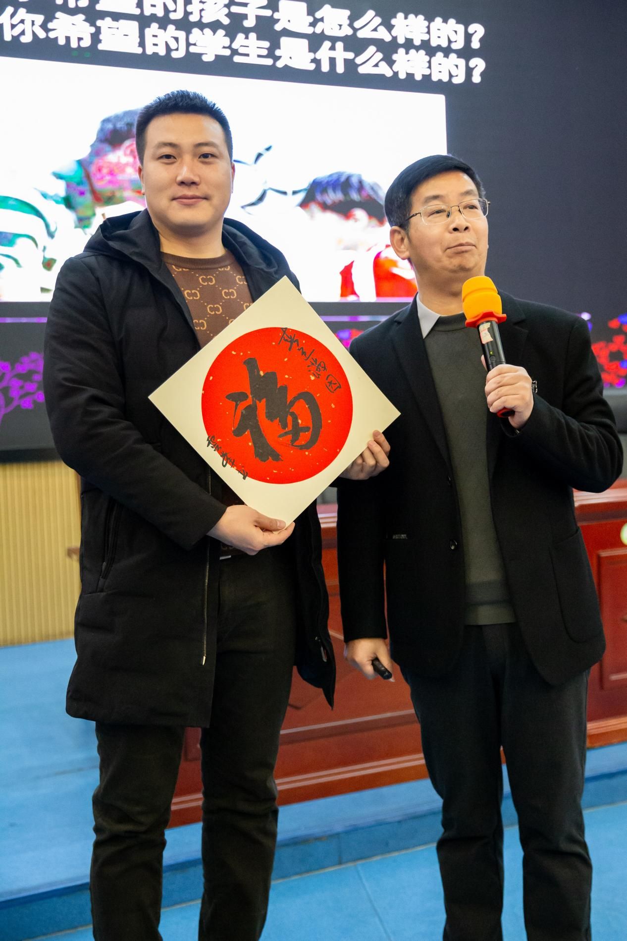由科普专家张云峰老师开场主讲《积极的力量:青少年积极心理品质的塑造与拓展》,他以风趣幽默的风格调动现场气氛后指出:教育的本质是塑造生命、塑造灵魂、塑造人。家校共育的目标是把孩子塑造成身体好、品质好的“人”。同时,他随机邀请现场家长分享自身感受,赠送了他题写的书法作品。张老师特别强调了培养青少年积极心理品质在成长中的关键作用,家长给孩子最好的礼物就是培养孩子幸福的品质——拥有积极心理品质,并鼓励大家塑造与拓展青少年的积极心理品质。
