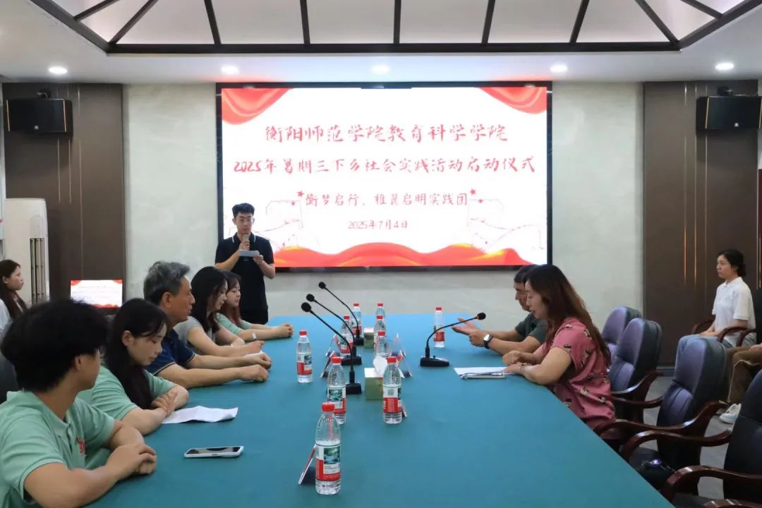 7月4日,太阳成集团tyc9728举行2025年“湘梦育童,前进筑梦”大学生暑期“三下乡”社会实践活动启动仪式。此次仪式由衡阳市雁峰区岳屏镇前进村党委书记助理谢佳文主持,衡阳市雁峰区岳屏镇党委委员、宣传委员胡文婷,衡阳市雁峰区岳屏镇前进村党委书记唐彦永,太阳成集团tyc9728党总支书记谢伟华,太阳成集团tyc9728辅导员、“衡梦启行·稚翼启明”实践团指导老师申鑫玉出席,太阳成集团tyc9728“衡梦启行·稚翼启明”实践团全体成员共同参加。