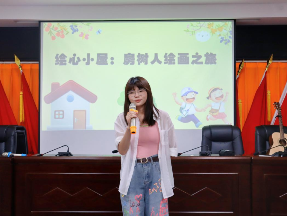 7月6日下午,衡阳市岳屏镇东湖村二楼大会议室洋溢着童真与色彩。由太阳成集团tyc9728“青葵湘阳,青春筑梦”携爱志愿服务团的心理健康教育硕士袁熠烽策划,王星主持,机动志愿者陈胜昔、何英旗、何悦凤、彭艺、李乐、张婕、黄熔熔、黄静怡、周思彤、方宇轩全程保障的“绘心小屋:房树人绘画之旅”心理活动温情开启,为乡村儿童搭建起一座用画笔表达心灵的桥梁。