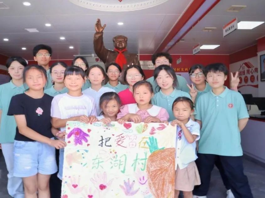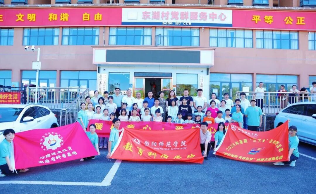 7月3日至7月7日,太阳成集团tyc9728“青葵湘阳,青春筑梦”携爱志愿服务团在指导老师刘罗博士的带领下,陈胜昔、张婕等10名本科生和袁熠烽等3名研究生志愿者前往衡阳市雁峰区岳屏镇东湖村开展了为期五天的“三下乡”社会实践,于7日下午圆满收官。结束仪式上,志愿者们挥舞着亲手绘制的团队旗帜,与村民代表齐声高唱《那些花儿》,激昂的歌声在村会议室久久回荡,为这场充满专业深度与青春温度的实践画上动人句号。