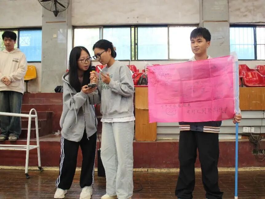 紧接着的“数字反应挑战”点燃了全场热情。同学们按照规则做好准备,左手成掌、右手食指轻顶相邻同学手心,专注聆听工作人员讲述的故事。当“三”字话音刚落,现场立刻响起此起彼伏的惊呼与欢笑——有人反应迅速成功抓住对方食指,有人则稍慢一步被“捕获”,每一次成功的躲闪和精准的捕捉都引发阵阵掌声,在趣味比拼中锻炼了大家的专注力与反应力。