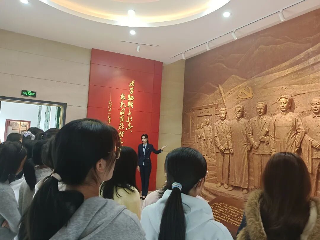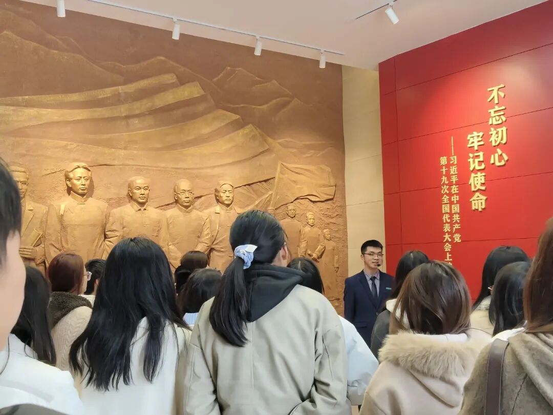 参观过程中,同学们认真聆听讲解,驻足凝视史料文物与历史影像,时而低声交流感悟,时而在重要历史节点前驻足思考。那些泛黄的文献、珍贵的照片、复刻的历史场景,将大家带回了那个战火纷飞却又热血沸腾的年代,让大家真切感受到革命先辈“为有牺牲多壮志,敢叫日月换新天”的豪情与担当。