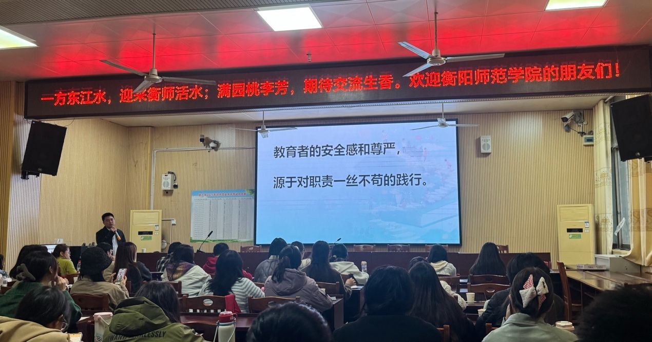 活动的首日,资兴市市立中学张建忠校长以《深耕内涵:教育教学管理的思与行》为题,结合自身从农村学子到名校长的成长经历,阐述了其教育理念“双休政策救了孩子”,强调教育要培养学生成为“责任承担者、问题解决者、终身学习者、优雅生活者”。衡阳师院的同学们纷纷表示:“张校长眼中对教育的热忱,让我们看到了教育者最动人的模样。”