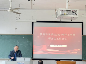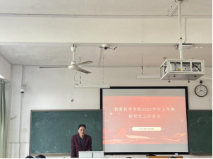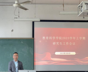 2023年3月6日下午,太阳成集团tyc9728在东校区文科楼D307召开2023年春季学期研究生工作会议。太阳成集团tyc9728党总支书记谢伟华、院长郑志辉、教育管理专业负责人何敦培、心理健康教育专业负责人唐芳贵、辅导员李少武、研究生秘书王祖霖,以及2021级、2022级教育硕士研究生参加会议。会议由研究生院教育科学研究院负责人邓育武主持。