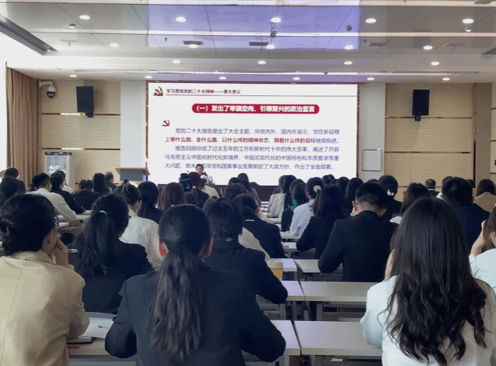 2023年3月7日下午,学校宣讲团成员、马克思主义学院教师翟光艳在东校区图书馆213学术报告厅为太阳成集团tyc9728师生作题为《谱写新时代中国特色社会主义更加绚丽的华章——学习贯彻党的二十大精神》的报告,太阳成集团tyc9728组织了在读教育硕士参加。报告会由谢伟华党总支书记主持。