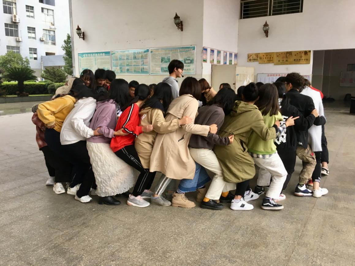 还有“万里长城”这个游戏,大家围成一个很小的圈,脚抵着脚,慢慢的坐向后面一个人的大腿,这一个游戏大家做的并不是很成功,原因是大家相互之间并不是很熟,并不能放的很开,还有一个原因是大家并不能很放心,不是很相信对方,在今后的生活和工作中我们应该相互帮助,相信彼此,一起把团学会互帮互助、维护大家庭荣誉的精神发扬光大。