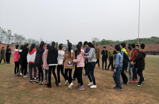 活动前,先召集了学生来到酃湖中学的操场集合,由于操场比较空旷,便于活动开展。总活动一共分为三大部分,首先是热身活动——桃花朵朵开,此活动内容主要是由辅导老师来发布花开的朵数的指令,而同学们则需要根据朵数来围圈蹲下。活动一开始,同学们都比较兴奋,特别是那些成功组队的同学,而那些没有成功组队的同学则显得比较沮丧。不过辅导老师请这些没有成功组队的同学,在大家面前表演了一个小节目作为惩罚,各位同学都比较勇敢又羞涩地表演了节目,尽管如此,却化解了他们沮丧的情绪。桃花朵朵开活动虽然进行的不是热烈,但还是调动起了同学们的积极性,缓解了同学之间比较压抑的气氛。